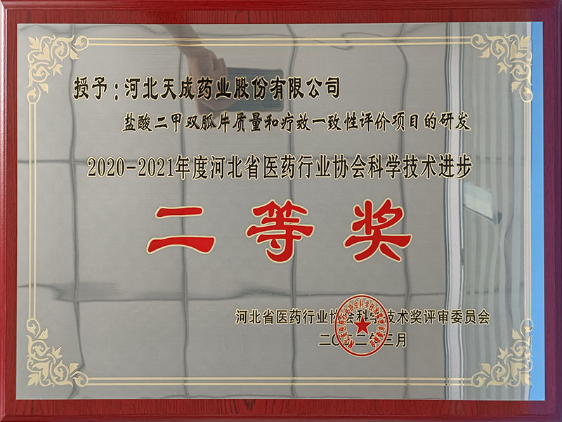 2020-2021年度河北省医药行业协会科学技术进步二等奖